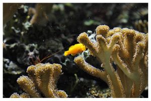 gobie jaune ... Cryptocentrus cinctus; Famille des gobiidés ... Nausicaa Centre National de la Mer Boulogne sur Mer (62) 10 août 2014 |