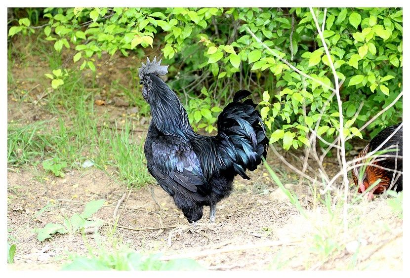 Coq noir Ayam Cemani ... Gallus gallus domesticus ... Parc aux Oiseaux Upie (26) 15 avril 2017 |