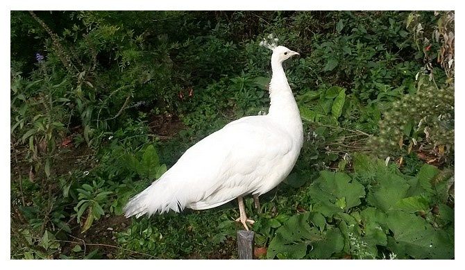 paon blanc ... Pavo cristatus mutation alba famille des phasianidés femelle bois de Vincennes (75) 10 octobre 2014 |