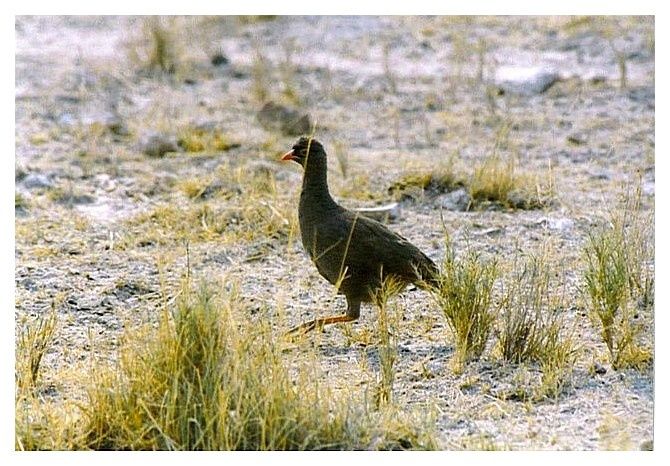 francolin à bec rouge ... Ptermistis adspersus ... Parc National d'Etosha (Namibie) septembre 1998 |